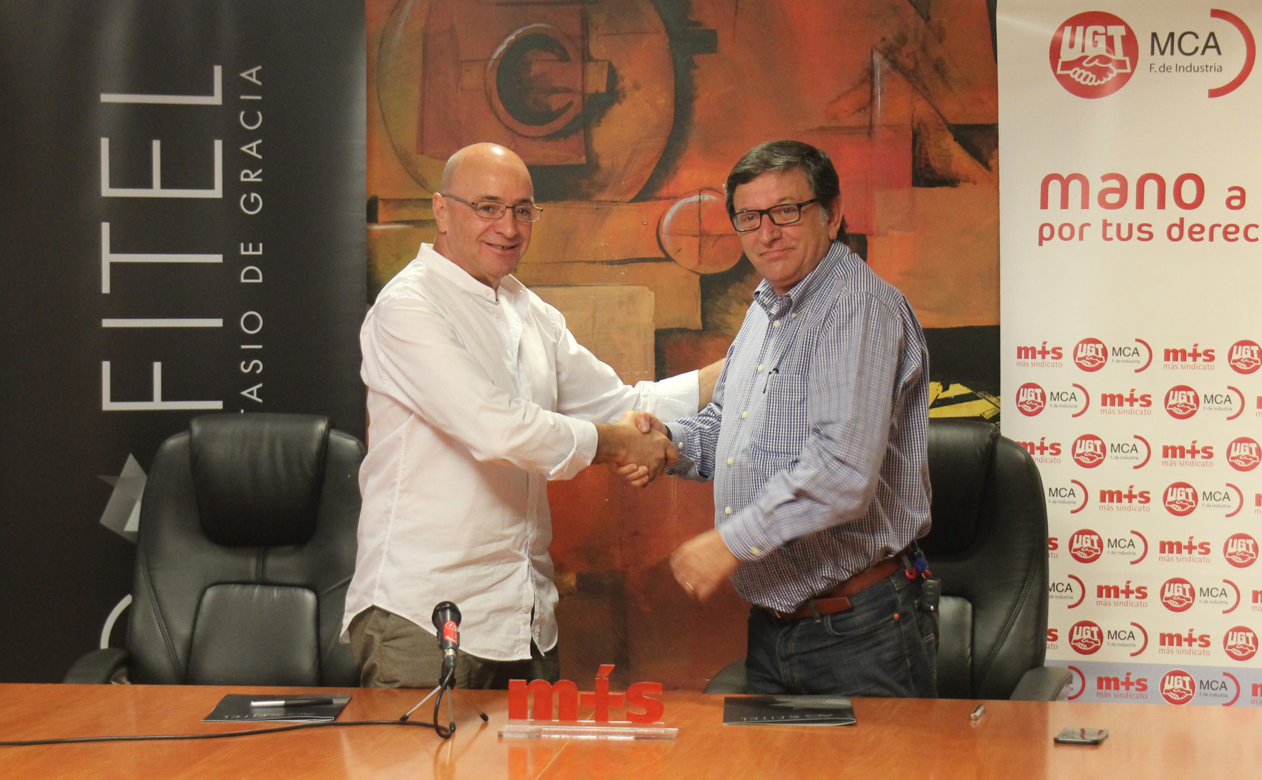 Carlos Romero, presidente de la Fundación Anastasio de Gracia FITEL (AGFITEL), y Eduardo Donaire, secretario general de MCA-UGT Asturias, han firmado un convenio para poner un marcha un programa de formación para cuadros sindicales con responsabilidad en la Federación.