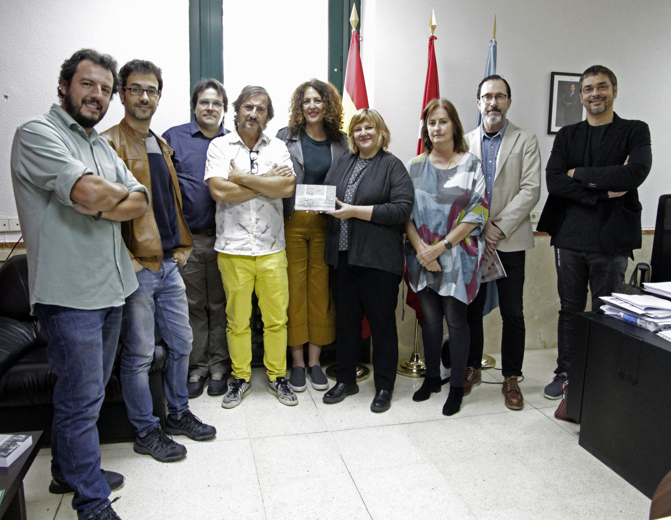 De izquierda a derecha, Miguel Sánchez-Moñita Rodríguez, profesor del Grado de Bellas Artes de la Universidad Rey Juan Carlos (URJC) y codirector artístico del Festival« Robert Capa estuvo aquí», Roberto García, responsable del Archivo del Centro Documental de la Fundación Anastasio de Gracia-FITEL, Vicente Alemany Sánchez-Moscoso, profesoredel Grado de BBAA de la URJC, Tomás Zarza, profesor del Grado de BBAA de la URJC y codirector del Festival, Rosa Gorgues, directora de la Fundación, Raquel Sardá, profesora del Grado De Bellas Artes de la Universidad URJC y coordinadora del mismo, María Luisa Delgado Jalón, decana de la Facultad de Ciencias Jurídicas y Sociales de la URJC, Rogelio Fernandez Delgado, vicedecano de Estudiantes de la Facultad de Ciencias Jurídicas y Sociales de la URJC y Uría Fernández, coordinador del Centro Documental de la Fundación y director técnico del Festival.