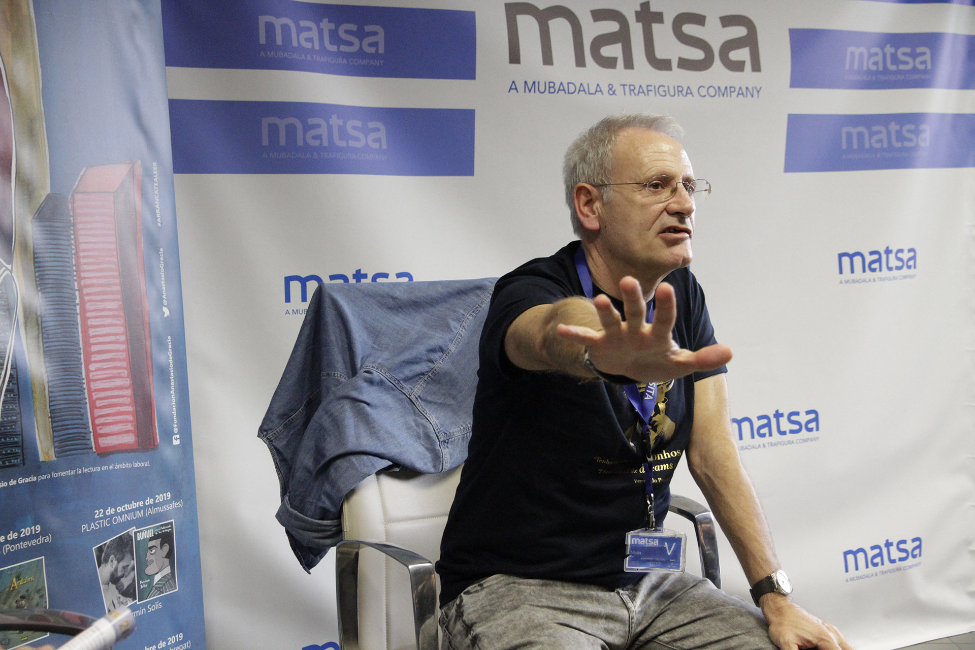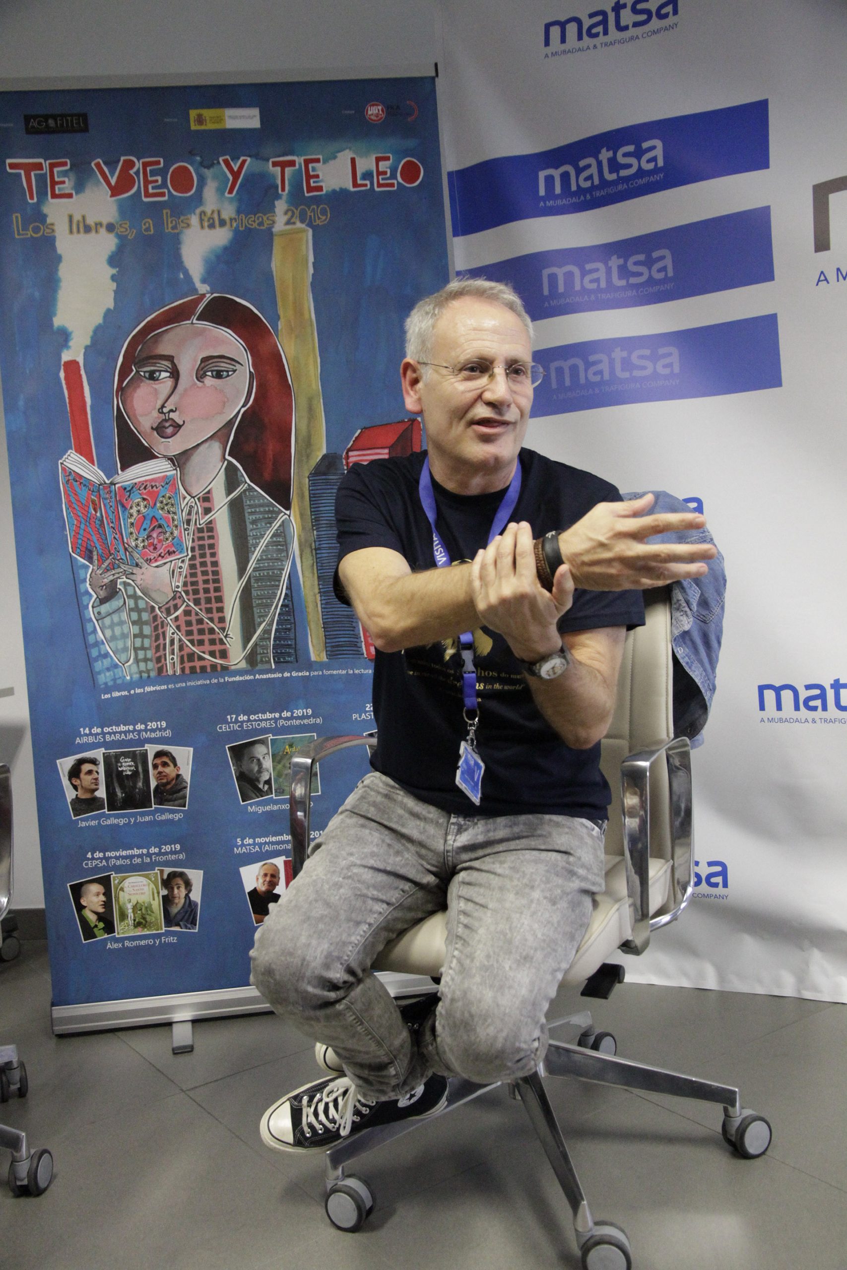 El próximo martes 5 de noviembre a las 16.00 horas, el historietista Ángel de la Calle se reunirá con los trabajadores de la empresa Matsa (Almonaster la Real, Huelva). El acto englobado en la sexta edición de Los libros, a las fábricas, forma parte de un proyecto diseñado por el Centro Documental de la Fundación Anastasio de Gracia para incrementar el número de lectores de nuestro país, donde cerca de un 40 % de la población manifiesta sin rubor «no haber leído nunca un libro».