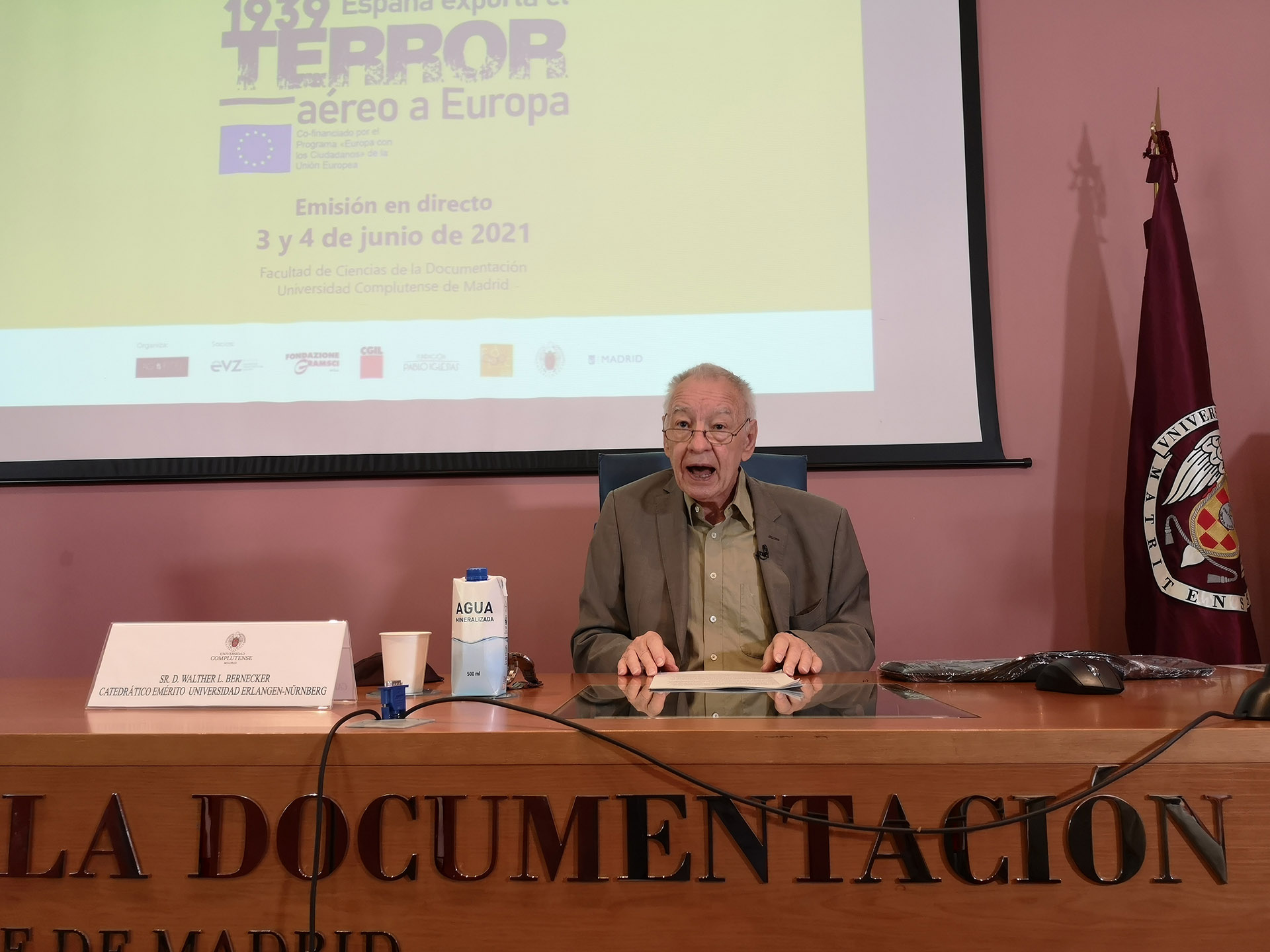 La Conferencia Internacional 1939 España exporta el terror aéreo a Europa, que se celebró en la Facultad de Ciencias de la Documentación de la Universidad Complutense de Madrid los días 3 y 4 de junio, y tuvo como objetivo analizar el uso de los bombardeos sobre la población civil como estrategia militar y de poder, comenzando por el bombardeo de Madrid al inicio de la Guerra Civil y continuando a lo largo de los conflictos bélicos que han tenido lugar en todo el mundo en los siglos XX y XXI. Contamos con la participación de expertos de Alemania, Italia, Suiza y España, cuyas aportaciones contribuyeron a arrojar luz sobre las causas y consecuencias de esta estrategia.