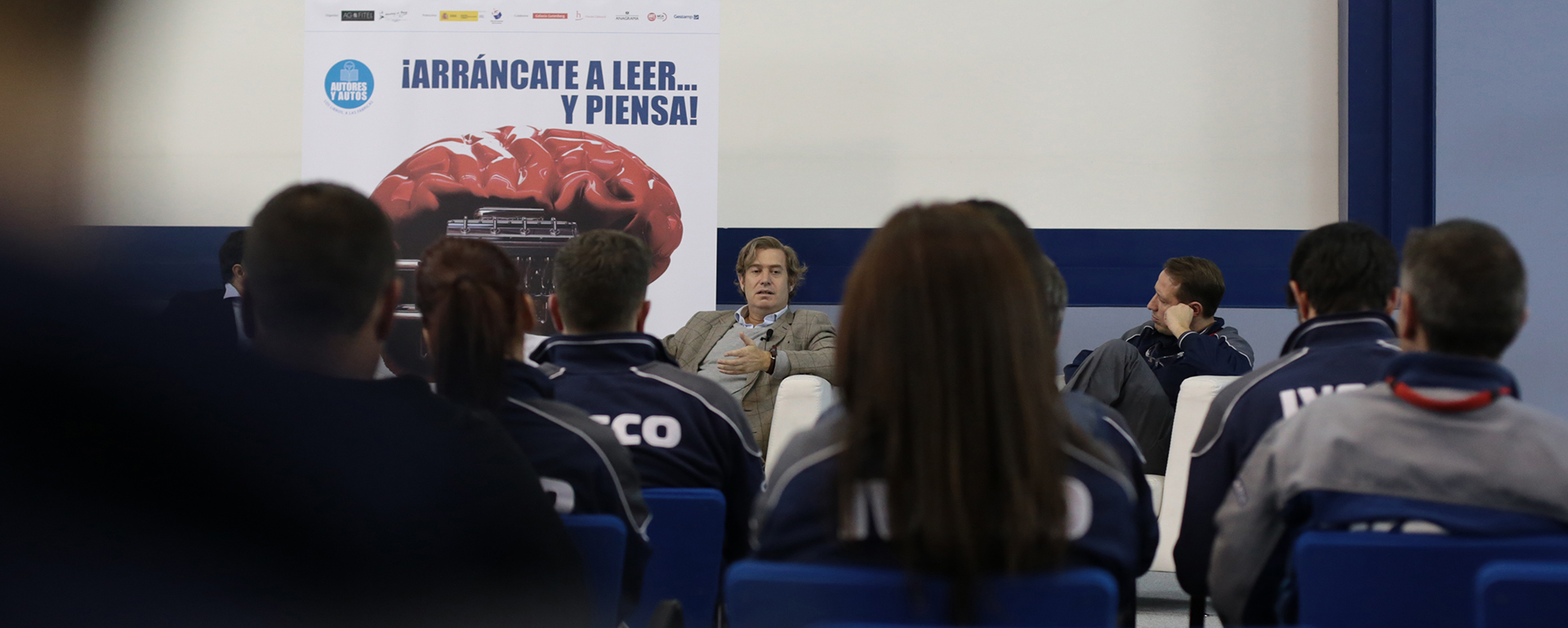 El filósofo Javier Gomá inauguró ayer en IVECO la 2ª edición de «Autores y autos ¡Arráncate a leer… y piensa!» Campaña enmarcada en el proyecto Los libros, a las fábricas, organizado por la Fundación Anastasio de Gracia y patrocinado por el Ministerio de Educación, Cultura y Deporte. El proyecto tiene como objetivo es fomentar la lectura en el ámbito laboral con el convencimiento de que la formación cultural del trabajador debe ser una parte fundamental del compromiso social de la empresa.