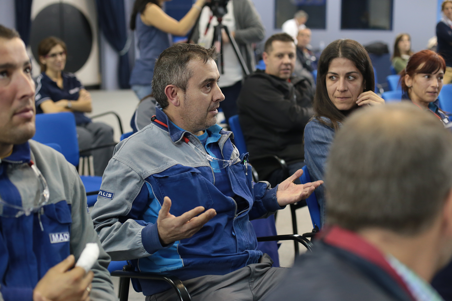 Javier Gomá comenzó su intervención manifestando su grata sorpresa tras la visita a la fábrica del motor, «tengo la impresión de estar en un sector más intelectual que manual. Yo pensaba que el objetivo de la Fundación era que yo os pudiera enseñar algo y ha ocurrido a la inversa: soy yo el que hoy ha venido a aprender».