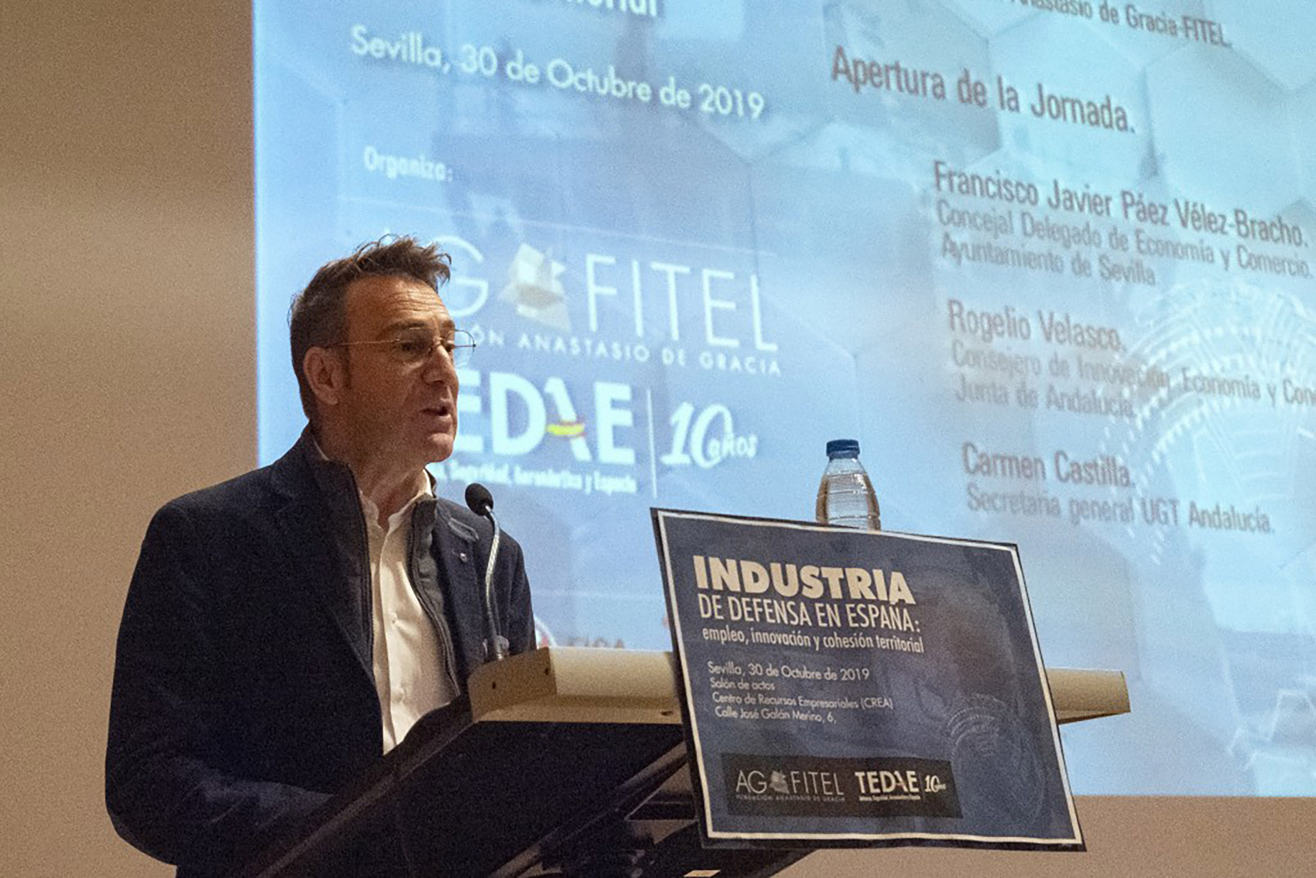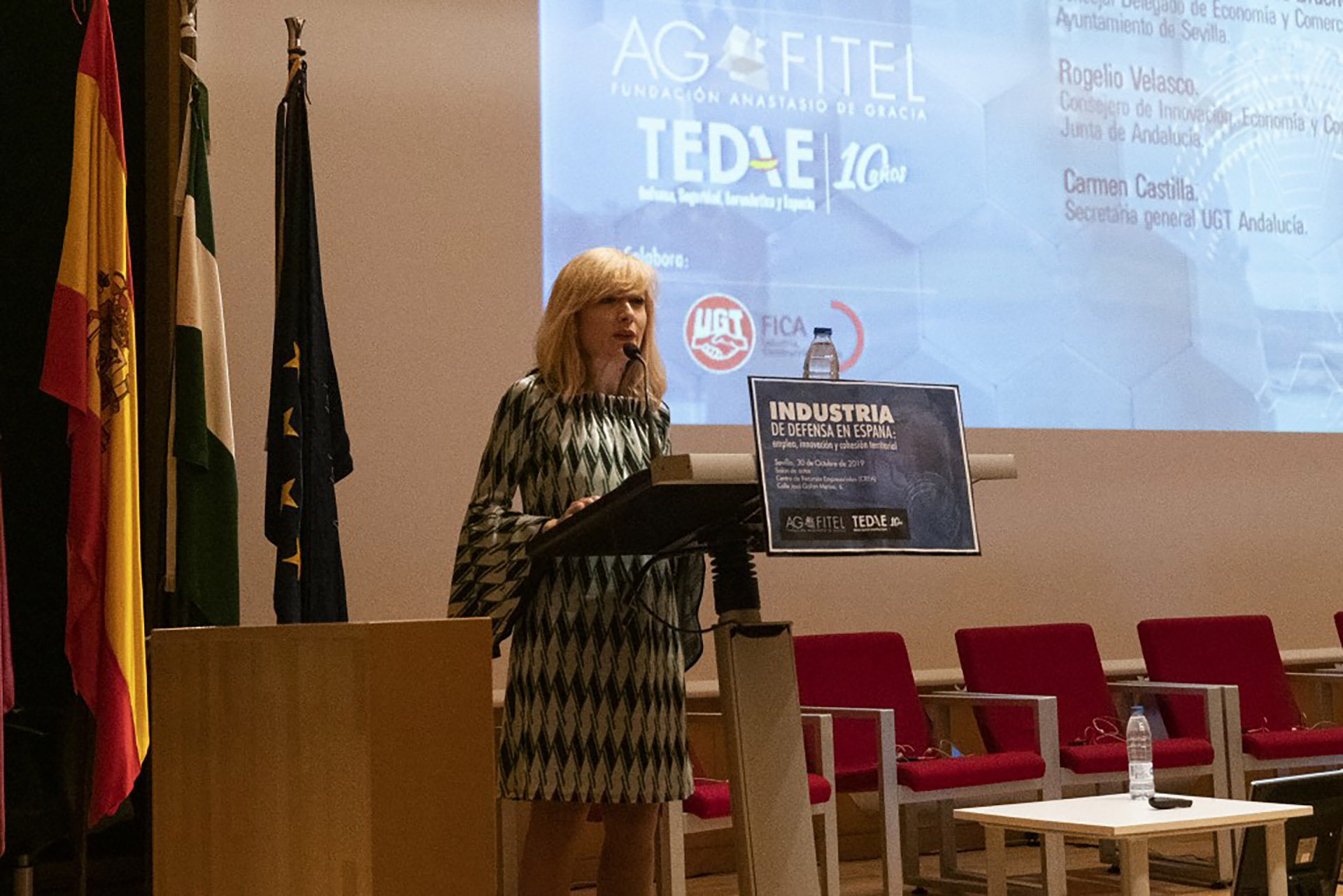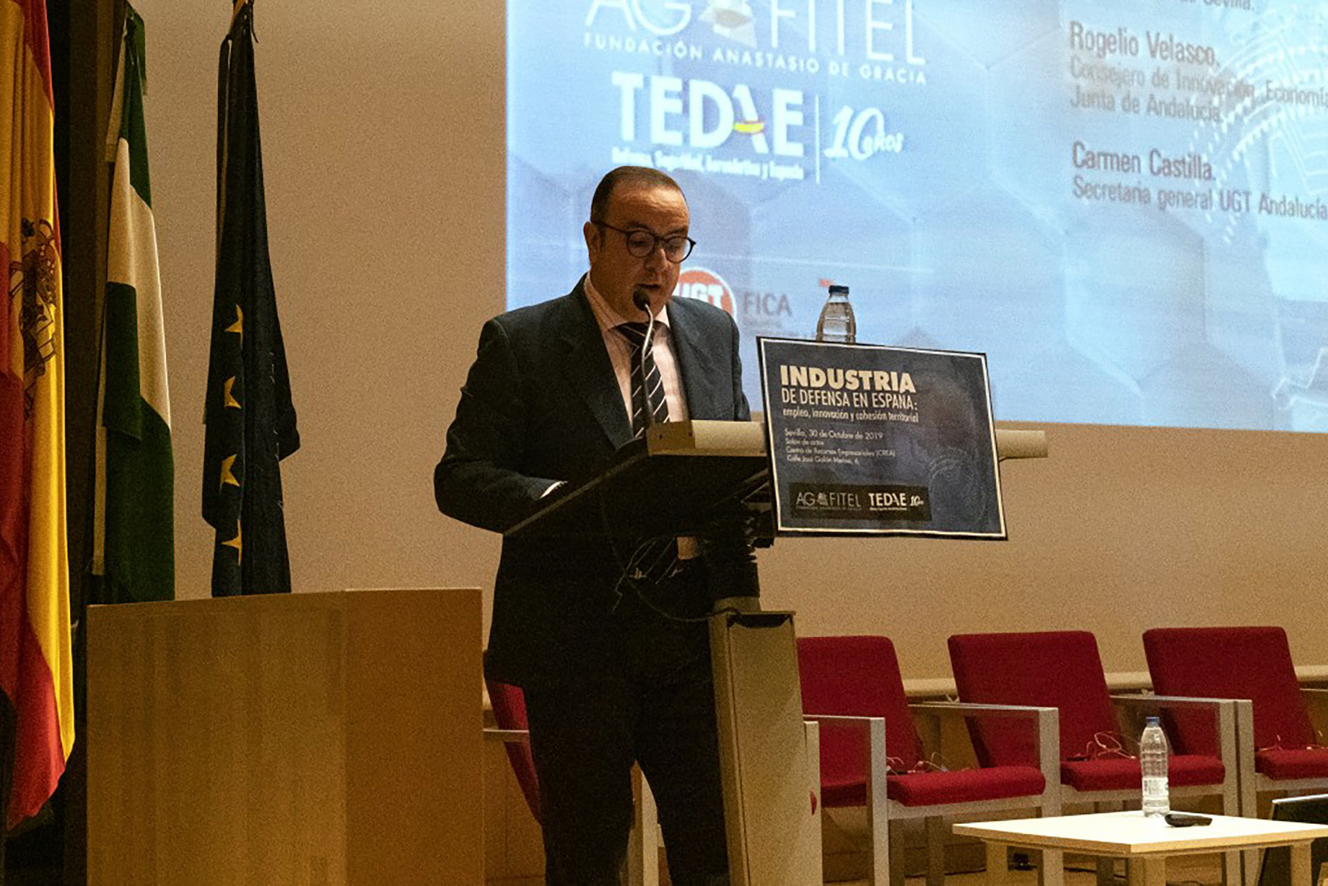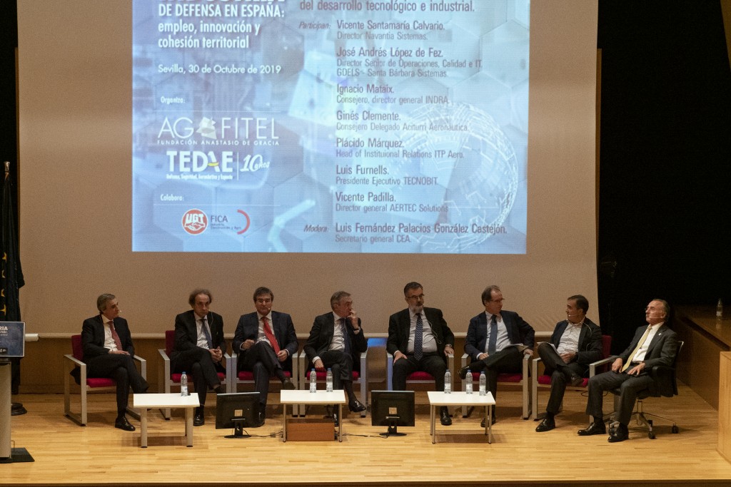 Se ha celebrado hoy la jornada sobre la industria de defensa titulada «Industria de Defensa en España: empleo, innovación y cohesión territorial», que han organizado conjuntamente  la Fundación AGFITEL y TEDAE en el edificio CREA de Sevilla.