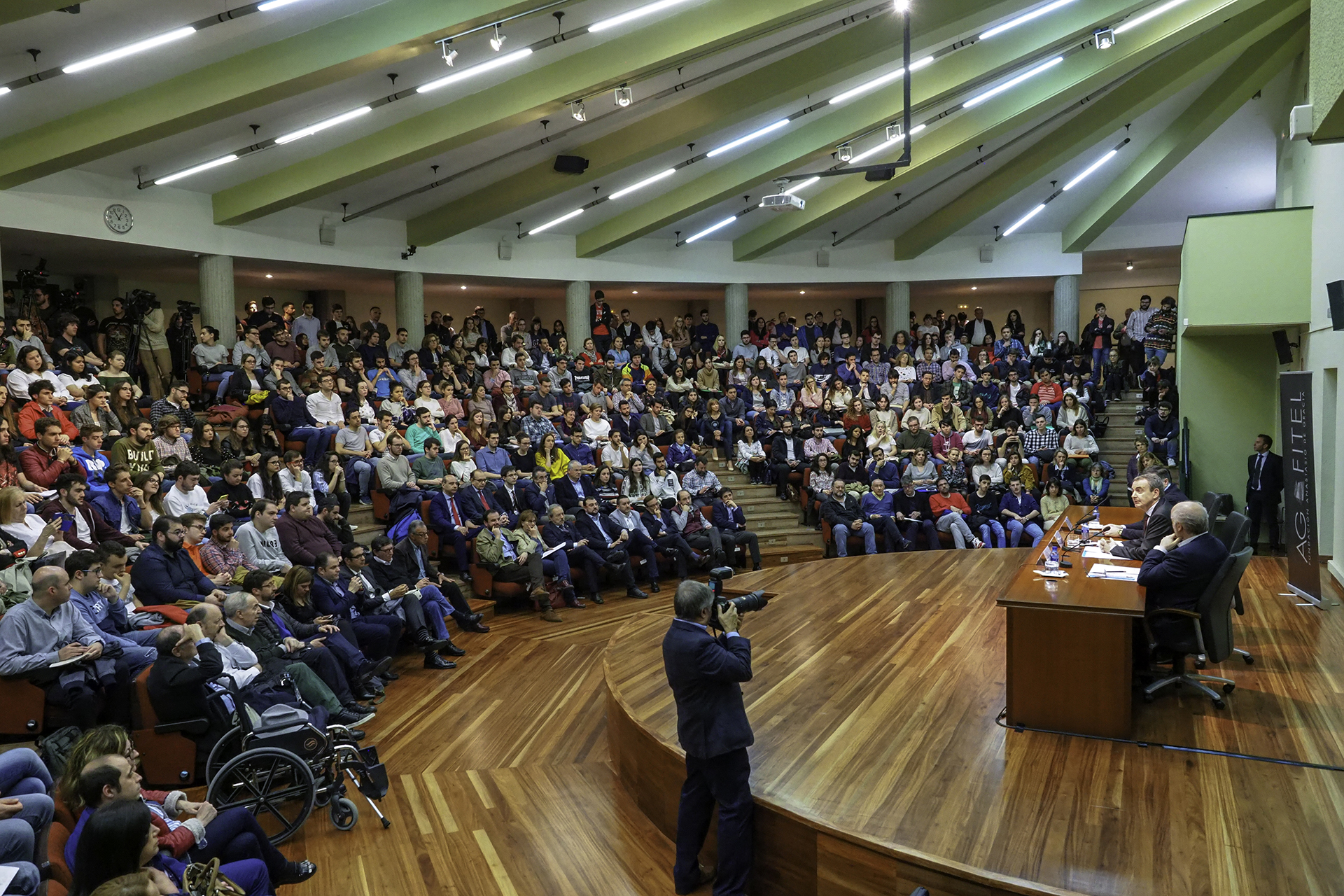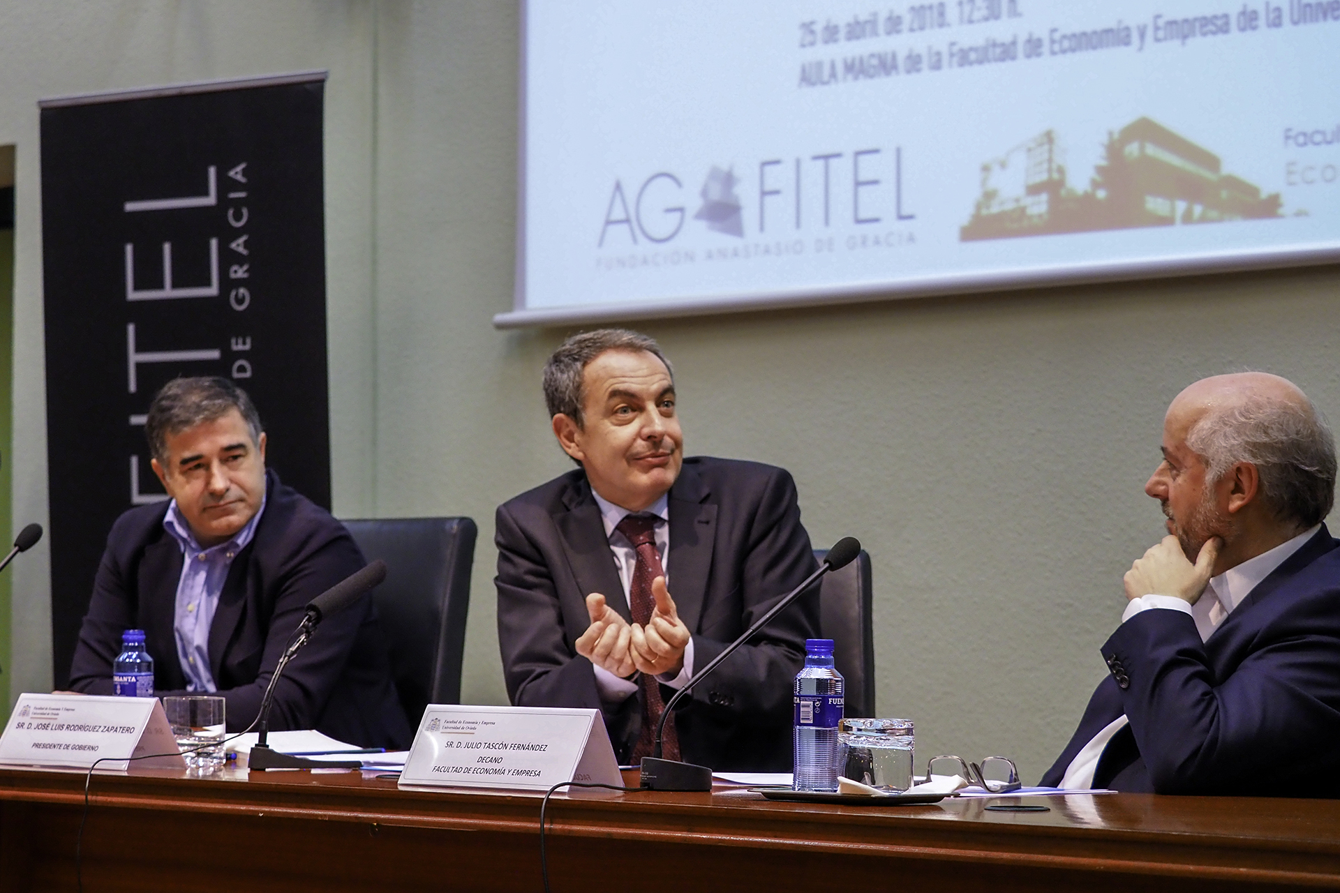 José Luis Rodríguez Zapatero comenzó la conferencia destacando la necesidad urgente de luchar contra la desigualdad, y destacó como principales medios para ello un importante incremento del salario mínimo interprofesional y la subida de las pensiones mínimas. Zapatero, miembro del Consejo Asesor de la Fundación AGFITEL, tuvo un emotivo recuerdo para el que fuera presidente de la misma, Manuel Fernández López “Lito”.