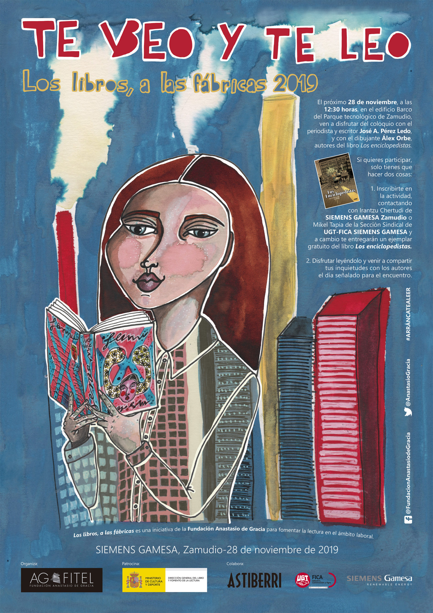 El próximo jueves 28 de noviembre a las 12.30 horas, el periodista y escritor José A. Pérez Ledo y el dibujante Alex Orbe se reunirán con los trabajadores de la empresa Siemens Gamesa, Zamudio (Vizcaya). El acto englobado en la sexta edición de ‘Los libros, a las fábricas’, forma parte de un proyecto diseñado por el Centro Documental de la Fundación Anastasio de Gracia para incrementar el número de lectores de nuestro país, donde cerca de un 40 % de la población manifiesta sin rubor «no haber leído nunca un libro».
