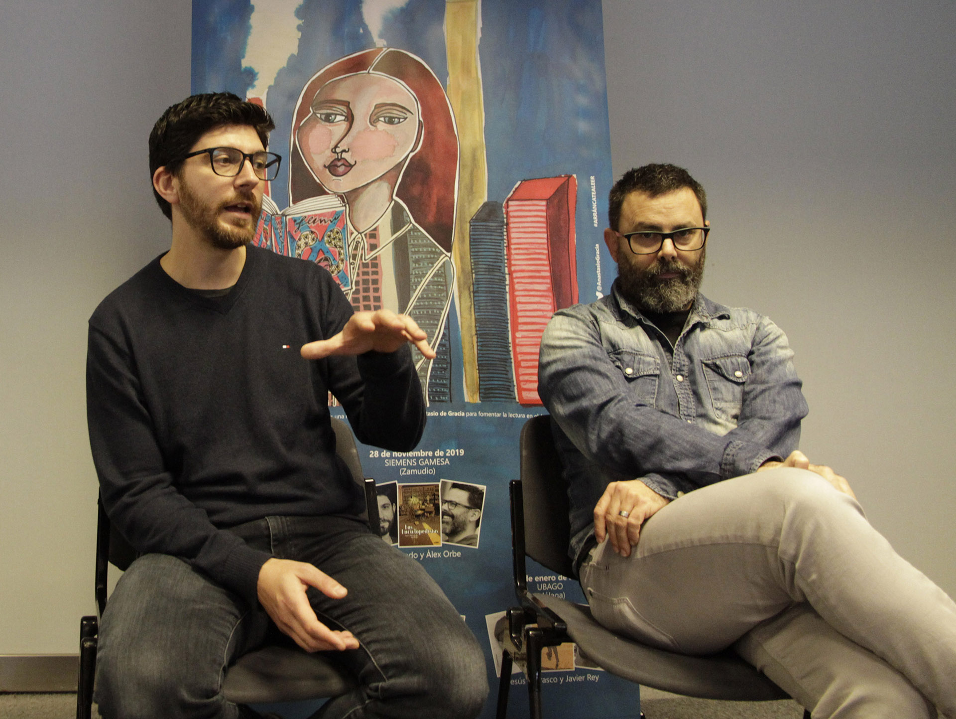 José A. Pérez Ledo y Alex Orbe debatirán con los trabajadores de la empresa Siemens Gamesa, sobre su libro Los enciclopedistas, en el que los autores, con una estética de dibujo francobelga, crean un relato de aventuras e intriga dentro de un marco histórico, en el que se dan cita algunos de los grandes referentes de la cultura y el pensamiento occidentales, como son los intelectuales involucrados en el surgimiento de la Enciclopedia.