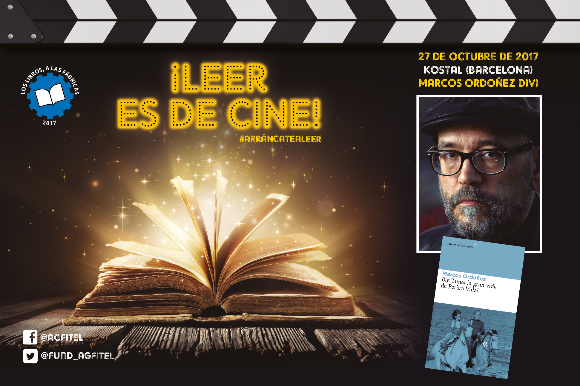 El próximo día 27 de octubre, viernes, el escritor y crítico de teatro Marcos Ordóñez Divi se encontrará con los trabajadores de Kostal, en la factoría que la multinacional alemana tiene en Sentmenat, con los cuales intercambiará impresiones sobre su libro «Big Time: la gran vida de Perico Vidal». Este acto forma parte de la campaña de Los libros, a las fábricas 2017, organizada por la Fundación Anastasio de Gracia-FITEL, y que este año bajo el título ¡Leer es de cine! llevará a once autores a otras tantas factorías industriales con la misión de fomentar la lectura.