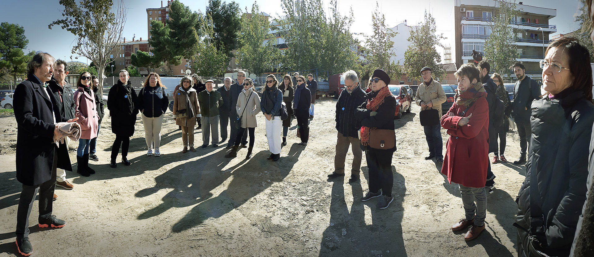 La fotografía y el lugar donde se tomó, se encuentran separados por tan solo cinco minutos en tren. Los participantes en la inauguración, tras contemplar las imágenes de Capa en el museo, viajaron en Renfe Cercanías —empresa colaboradora en la organización— hasta Peironcely 10, donde realizaron una de las visitas guiadas incluidas en el programa del Festival. Allí, los organizadores, explicaron a Cinthya Young y al resto de asistentes todo el proyecto que la Plataforma #SalvaPeironcely10 contempla para revitalizar el degradado y olvidado entorno de la conocida popularmente como «Casa de Capa».