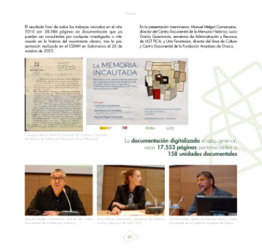 resado en la historia del movimiento obrero, tras la pre- de UGT FICA; y Uría Fernández, director del Área de Cultura