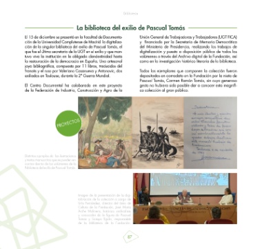 ción de la singular biblioteca del exilio de Pascual Tomás, el del Ministerio de Presidencia, realizando los trabajos de