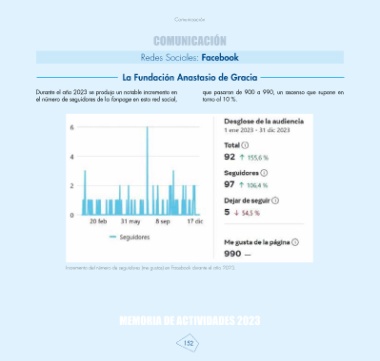 Incremento del número de seguidores (me gustas) en Facebook durante el año 2023.