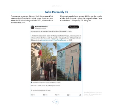 vaPeironcely10 pasó de 909 a 968 lo que supuso un creci- el robo de la placa de la plaza del fotógrafo Robert Capa,