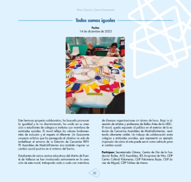 entidades sociales. El mural refleja los valores fundamen- tación de Cercanías Asamblea de Madrid-Entrevías, resul-