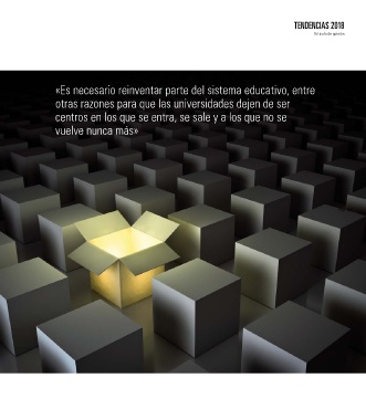 TENDENCIAS 2018 Artículo de opinión «Es necesario reinventar parte del sistema educativo, entre otras razones para que las universidades dejen de ser centros en los que se entra, se sale y a los que no se vuelve nunca más» Pág. 189