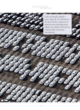 A r t í c u l o s de o p i n i ó n Como proveedor global y socio clave de los fabricantes de automóviles, tenemos en marcha una estrategia para liderar los cambios disruptivos y desarrollar soluciones innovadoras 37