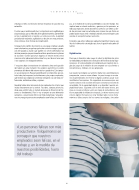nos en conseguir que nuestros empleados sean felices, en el traba- mientas y útiles propios de las nuevas tecnologías, sino saber