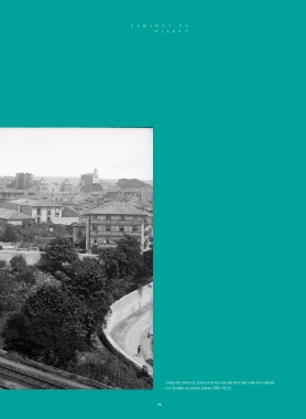 C A M I N O S D E H I E R R O Vista del centro de Llanes con las vías del tren que unía la localidad con Oviedo en primer plano (1905-1925). 195
