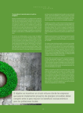 beneficios socioeconómicos y ambientales para las zonas en tran- política energética al servicio de las personas que habitan el terri-