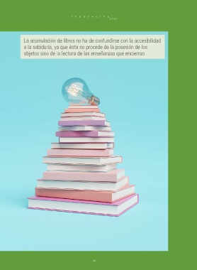 T E N D E N C I A S 20 2 2 La acumulación de libros no ha de confundirse con la accesibilidad a la sabiduría, ya que ésta no procede de la posesión de los objetos sino de la lectura de las enseñanzas que encierran 84