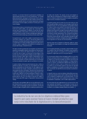 especie, pero, además, es una oportunidad para fomentar un desa- La industria ha de ser uno de los objetivos indiscutibles para nues-