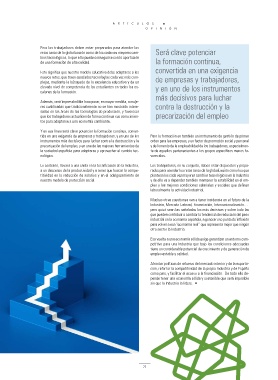 precarización del empleo, y en una de las mejoras herramientas de y de fomento de la empleabilidad de los trabajadores, especialmen-
